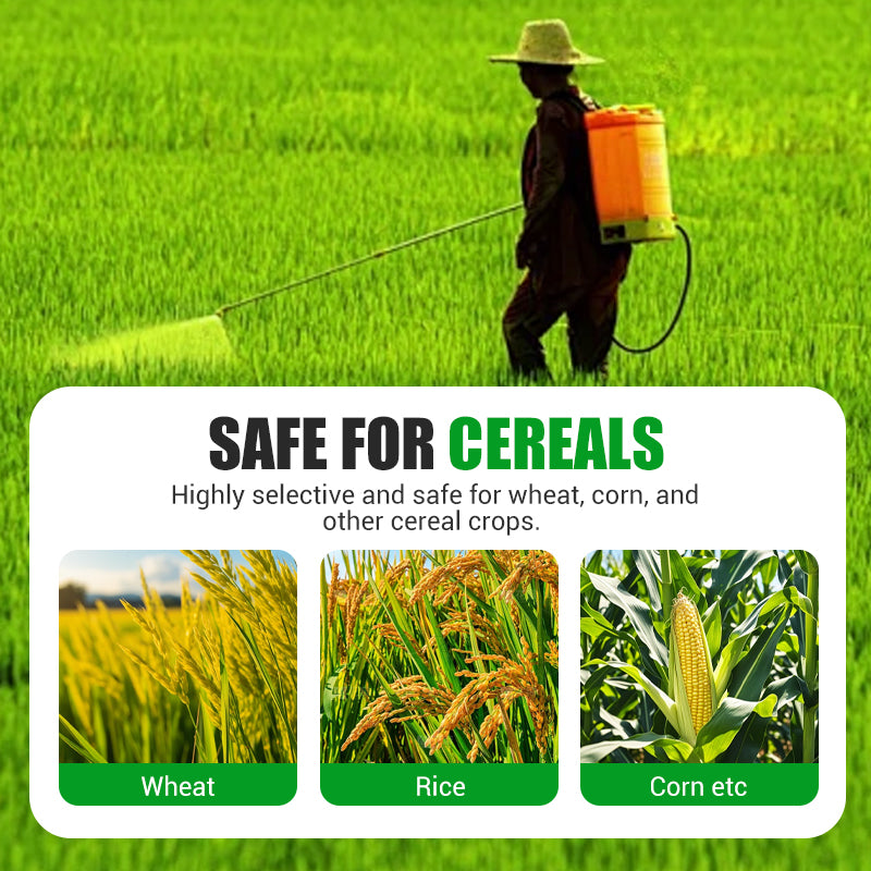 SAFE FOR GRASS CROPS – Highly selective and safe for cereal crops such as wheat and corn. Carefully selected active ingredients and optimized dosage protect crops from herbicide damage while effectively eliminating weeds.