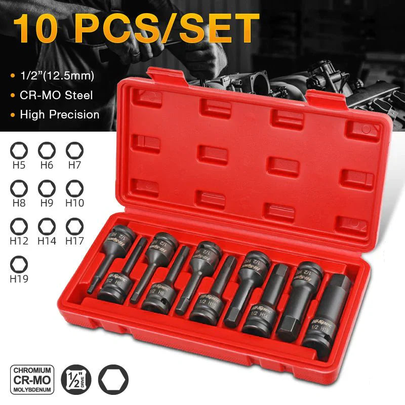 Try these 1/2” Pneumatic Wrench Hexagonal Drive Bits that install/remove hexagonal screws in seconds! Save you more time and effort!