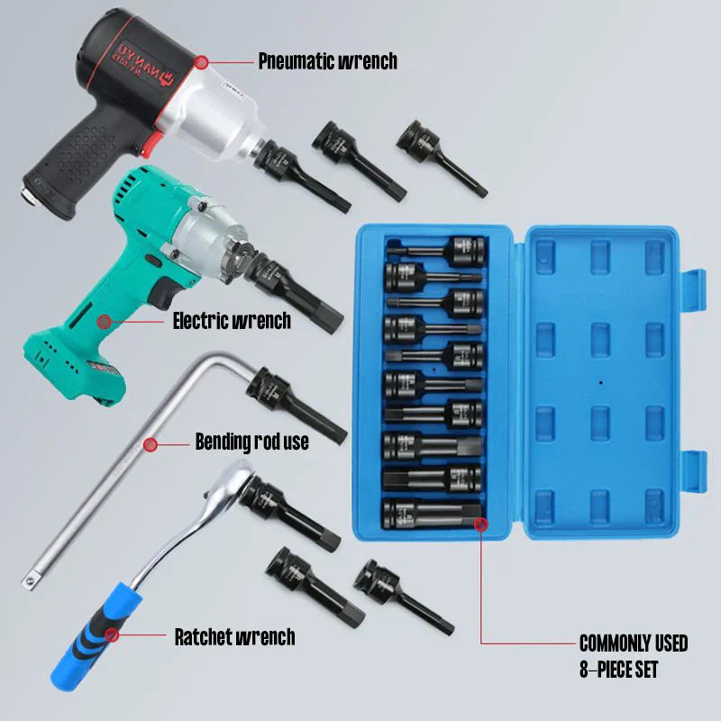 Quickly insert into a 1/2" pneumatic wrench, remove hexagon screws in seconds and improve work efficiency.