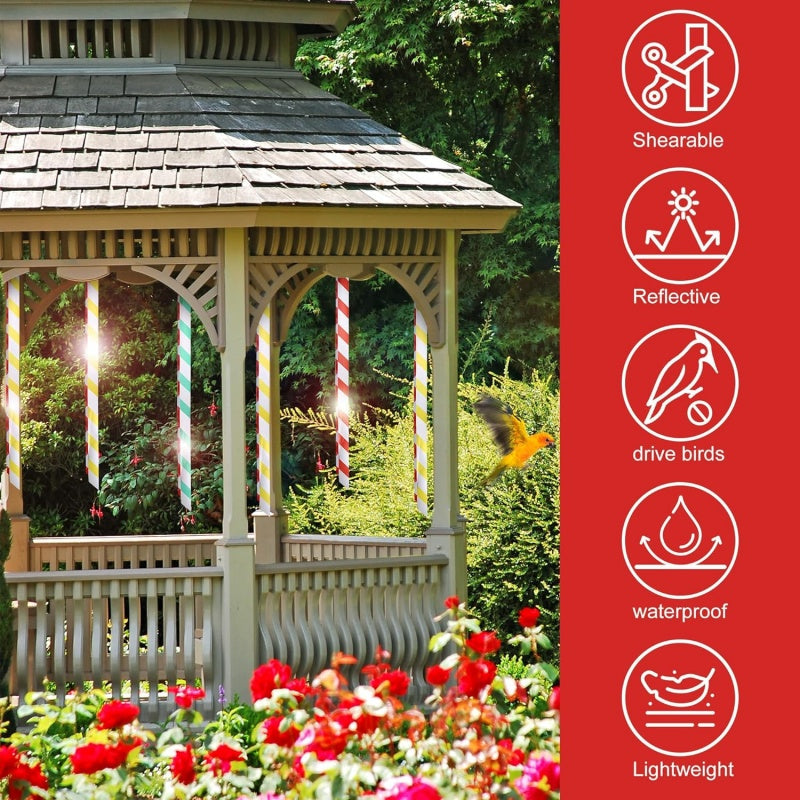 EASY TO INSTALL - The lightweight design allows for simple installation on trees, fences, and garden stakes. Just unroll the tape and hang it in your desired location to start repelling birds immediately.